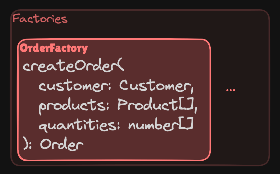 For example, the OrderFactory creates the Order (aggregate root) and ensures that all OrderItems (part of the aggregate) are properly initialized and validated.